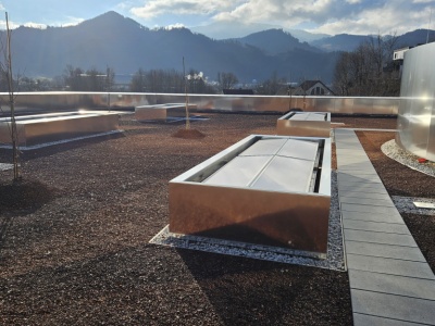 - Wärmeabzug und Vegetation: Die Herausforderung, Pflanzen und Vegetation auf dem Dach zu integrieren, ohne dass die Funktionalität des RWA-Systems beeinträchtigt wird, wurde durch innovative technische Lösungen gemeistert. Es wurden spezielle Einhausungen hergestellt, die den natürlichen Wuchs der Begrünung auf der einen Seite ermöglichen und diese auf der anderen Seite aber gleichzeitig den notwendigen Rauch- und Wärmeabzug nicht beeinträchtigt.